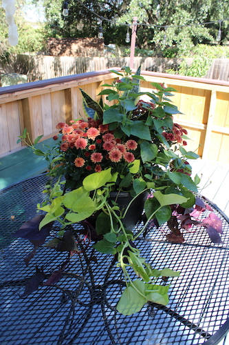 From 10/16 – Jason and I have begun the next phase of planting in our yard, and while we were out at the nursery, they had fall bouquets for sale. I loved them so much and definitely got one. Despite doing pretty well in terms of a garden in our yard, I actually have a black thumb. The garden thrives purely because I let it do its own thing and don’t mess with it! So I’ve never been able to keep a potted plant alive. I don’t know how this one will fare, but at least it’s pretty in the meantime.