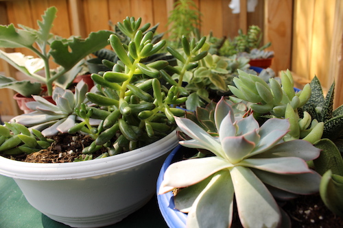 From 10/23 – Originally, I thought we would just be planting our aloe in the future succulent garden area, but instead we decided to do the entire mini-succulent garden! Mini-succulents make me so happy!