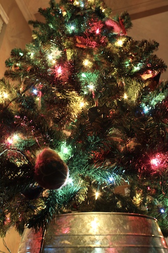 Unfortunately, we had a bit of a disaster with the decorations this year. One of our snow globes broke sometime in storage, and the water inside seeped into an entire box of stuff. We lost some things – including all of our custom stockings (mine dated back to the mid-90s!) – as well as most of the packaging that kept the other snow globes safe while packed away. All things considered, though, we didn’t lose TOO much. Our actual tree ornaments are kept in a separate packing system, so those were fine, and we were able to decorate for Christmas without buying too much in replacement. Of course, the kittens are scattering the ornaments and lights every chance they get…ha! We actually bought that metal tub thing to go around the bottom of the tree just to try to discourage them from climbing up it. Yeah, that didn’t work. Heh. But, you know, we’ve dealt with kittens and Christmas trees many years now, and the big thing is that we just don’t put any of the fragile or priceless or very old ornaments up, or any ornaments they can pull apart and possibly eat/choke on. By next year, they’ll be better.