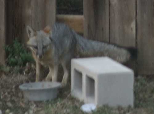 That photo is grainy and blurry, but it was much, much darker outside than it looks here. Jason couldn’t see this guy out the window at all, and I barely could. This was the best I could do with my limited resources. I was honestly glad to get any photo of the gray fox in my yard! This was such a cool experience!