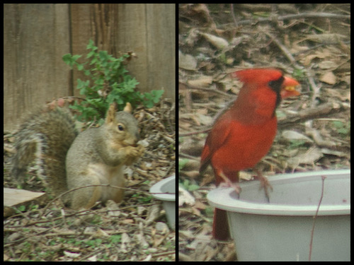 ++I can’t watch the area all day, so sometimes the food disappears and we don’t know who got it. We’re in the process of getting an outdoor motion-sensor camera so we can get a better idea of the scope of this project.