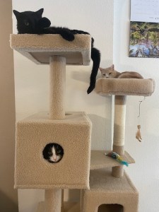 helping Morrigan and his fiancé Katy (via phone calls and texts) nurse their sick kitten back to health from the brink of death- a new cat tree for our babies to enjoy –>