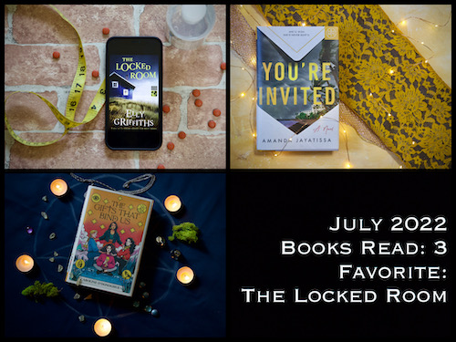 July continued and finished my Murdoch Mysteries rewatch. Books weren’t really a high priority, but I have a feeling they’ll become more so over the next few months. Unfortunately, I had my first (and hopefully only) one-star book of the year (You’re Invited). At least the other two were excellent!