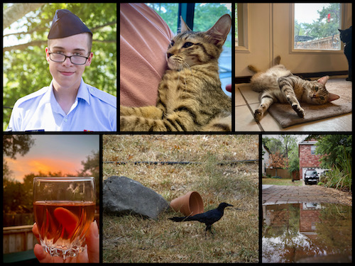 Bottom: Rosé at sunset; portentous; much-needed rain