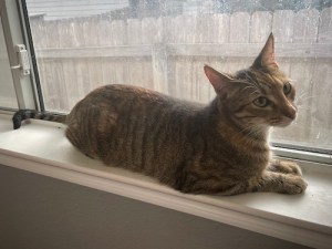 By 8:30, we were at the vet, who confirmed that Sunday had no microchip. However, she did have a spay scar and tattoo! But with no ear tip, and her being as friendly and clean as she was, we didn’t think she’d been TNRed. Which left Jason and me in a bit of a conundrum. Try to find her owner via social media? Leave out flyers and just keep Sunday in Jason’s room for now? Surrender her to the animal shelter since she was friendly and could be adopted out? Let her go so she could find her own way home, assuming she had a home?