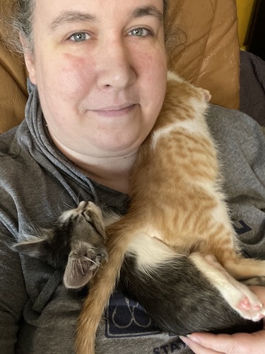 Rillo, the boy who exudes every characteristic you’d expect in an orange kitten with a shared brain cell (iykyk), who has run headfirst into poles and walls because he was too focused on something else to notice them, who has to be picked up when you enter the room and cuddled on his back for belly rubs, and will lick your ears if you don’t stop him. Constant, nonstop, loud, instantaneous purrs.