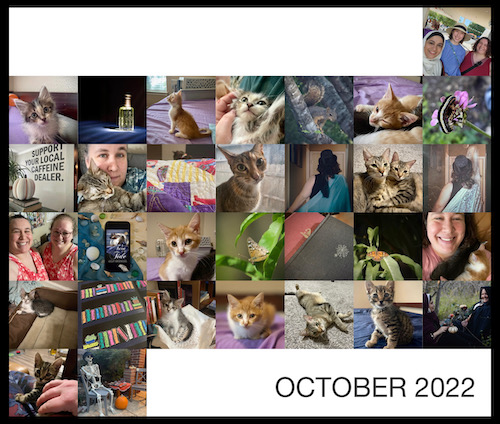 October turned out to be a pretty incredible month. Started on Day 1 with a Muslim Culture Festival in Austin with friends – my first proper ladies’ day out in ages – and ended with an amazing Halloween night where we had the exact perfect amount of candy and also got to feed a community cat. Because even the cats in the neighborhood know that we’re the cat house, ha! In between, I brought kittens back from the brink of death, went on a yarn crawl with a friend, semi-rescued a neighborhood cat, dove into a bujo project to consolidate the 13 notebooks taking up space on my shelf, and had my first real group photoshoot. Part of the busyness and insanity was in compensation for the very real dissonant feelings I have about becoming an empty nester, and part was just October, which tends to be fairly high-energy for me. So there were down moments, but overall, such a lovely month.