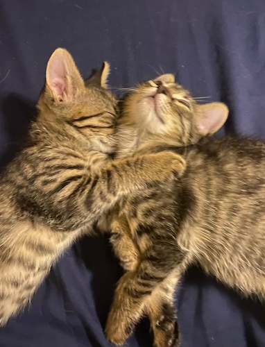 But that’s a future problem. For now, Jason and I continue to show these babies all the love and fun and happiness that we can, while also trying to get that eye to heal! These guys are super active and playful, though Dee Dee is definitely the more energetic of the two, while Dexter is the cuddlier. I hope we can get them both all healed up and as cute/sweet as can be so they won’t be completely ignored on the adoption floor for being brown tabbies. If only people knew how sweet and laid back and talkative and loyal brown tabbies are! They have some of the best personalities in the cat world! And just look how cute they are cuddled up with each other!!