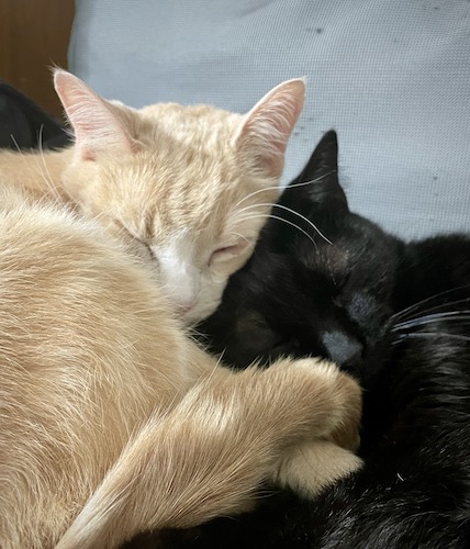 January was lovely. Honestly, I’m not used to January being a mostly-good month. My depression cycles – which have remained fairly consistent since I was about 13 or 14 years old – usually involve me having a great first 2-3 weeks of January and then crashing hard somewhere around the 18th of the month. (Yeah, it’s so regulated that it’s almost always within a day of the 18th specifically!!) I don’t know if it’s getting older and closer to menopause or peri-menopause (you notice this started not long after puberty!), or if several years on the right anxiety medication is smoothing things out, but I didn’t really have a crash this year. I had a week toward the end where I didn’t feel great, though that was right in line with PMS, so I don’t really count it. Is that all TMI? I don’t care. I have a female body, and the older I get, the more ridiculous it seems to hide talk of what every female body goes through. So anyway, it was a lovely month for the most part, and a really good start to the year. I feel good about 2023 so far and I hope that continues! The last two years were a bit rough for me and I’d love for 2023 to be a good one! [Pic: A random January photo of my bonded kitties, Atticus and Jojo, snuggling.]