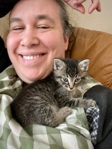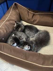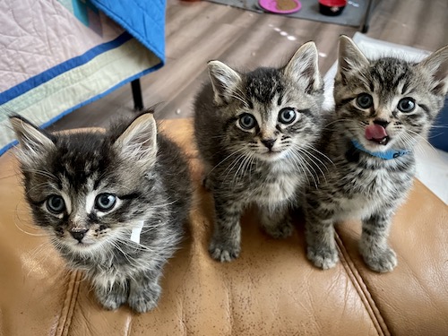 Huey, Dewey, and Louie are loud, chaotic, and so fun to play with. They don’t yet know how to snuggle well (too active!), and you have to protect your clothes from paws that have stepped in both food and poop (sigh), but that’s just their age. They’ll grow out of it soon, just like they’ll grow out of those round bodies and triangle tails. (A pity – triangle tails really are the best!) Other than the brief week we had the Bistro Babies, who were mostly cared for by their mama, we haven’t had kittens this young since Shai and Hulud. Our fosters are usually 6+ weeks, because kittens at this young age are usually with their mom or on a bottle. Like I said, I don’t know the story behind how these guys ended up weaned and orphaned at this age, but it’s fun to spend time with littles again. They’ll be with us for at least a month, and as they started out fearless and happy to play with humans, they’re going to be the biggest snuggle-babies by the time we’re through with them!