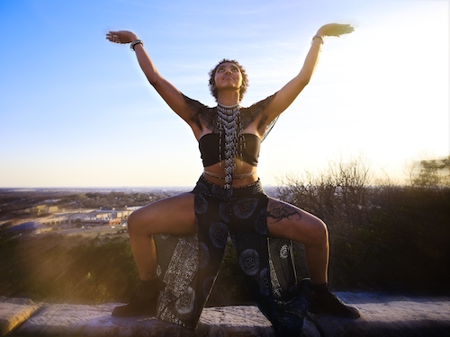 And I have to say, for having only a vague idea of tone (elvish and/or witchy), an outfit, and a few props, these photos came out incredible! Reneé is a natural model. They brought a lot of fun, lighthearted, enthusiastic energy to the shoot. They were also really great at following direction when I had to adjust little things, like the tilt of their head or where to put their hands. (Though honestly, for the most part they had a natural instinct about posing!) We worked together pretty seamlessly, and got along really well, too. You know how sometimes you get together with someone and you run into painfully awkward lulls in conversation? There was none of that here. Reneé is the same age as my kids, plus this was only our third time meeting up, so it could have been awkward for many reasons, and it wasn’t at all. We both ended the shoot excited to do more work together in the future.