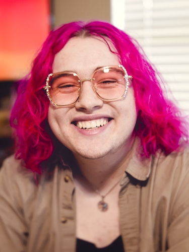 - Elle getting home safely for the summer (with pink hair for bonus fun!)