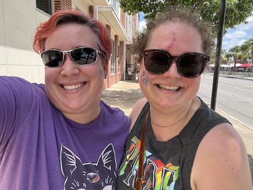 It was a park event with a bunch of booths that were selling/giving things out. By that point, I’d come out with my chosen name, started embracing the nonbinary label more fully, and begun learning about comphet (compulsory heterosexuality) on the way to realizing that I was never bi/pan but 100% a lesbian. There’s not much really to write, but considering it was my first Pride, I wanted to mark it on the blog. 🥰