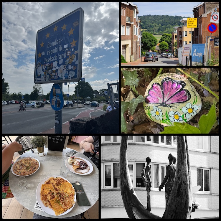 Once all three of us were together, we drove up to Dreilaendereck. It’s a very touristy place, at least right where the countries meet, complete with silly backdrops for photos, playgrounds for kids (apparently both my companions had been there on field trips in the past), overpriced cafes, etc. We waited our turn to get photos at the center, each of us standing in a different country (I apparently represented Belgium, hahaha). Then we broke off from the crowds and went for a long hike through the hills. Periodically, my phone would buzz at me to welcome me into a new country, but there were no “borders.” It was just three of us hiking around three countries without ever really knowing which country we were technically in. Absolutely lovely!